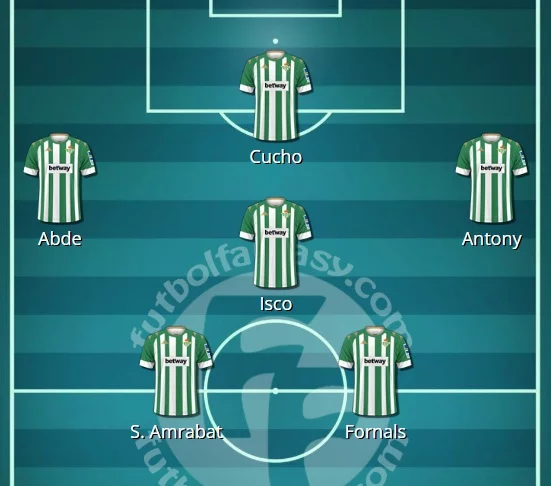 Ese movimiento obliga a revisar, en primer lugar, la función de Fornals. Una alternativa consiste en retrasarlo junto a Amrabat, formando un doble pivote que dejaría sin sitio de partida a Marc Roca y Altimira. Otra vía desplazaría a Fornals hacia la derecha, una solución útil en jornadas en las que Antony necesite bajar carga por la pubalgia. También cabe la opción más simple: que Fornals descanse y sea Isco quien asuma el foco en la mediapunta. En ese reparto de espacios, además, Lo Celso también está llamado a transitar con naturalidad entre ese carril interior y la banda, como una pieza capaz de alternar alturas y perfiles sin perder influencia en la elaboración.