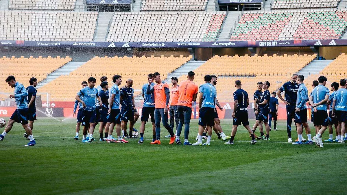 La Real Sociedad ha completado una nueva sesión de entrenamiento este viernes por la tarde en el Estadio de La Cartuja, escenario de la final de la Copa del Rey, con el objetivo de seguir preparando el encuentro del próximo sábado contra el Atlético de Madrid, a las 21:00 horas. El cuadro donostiarra ha continuado con su puesta a punto en el mismo recinto que albergará el partido, una circunstancia que permite al grupo familiarizarse con el entorno antes de una cita de gran trascendencia.
