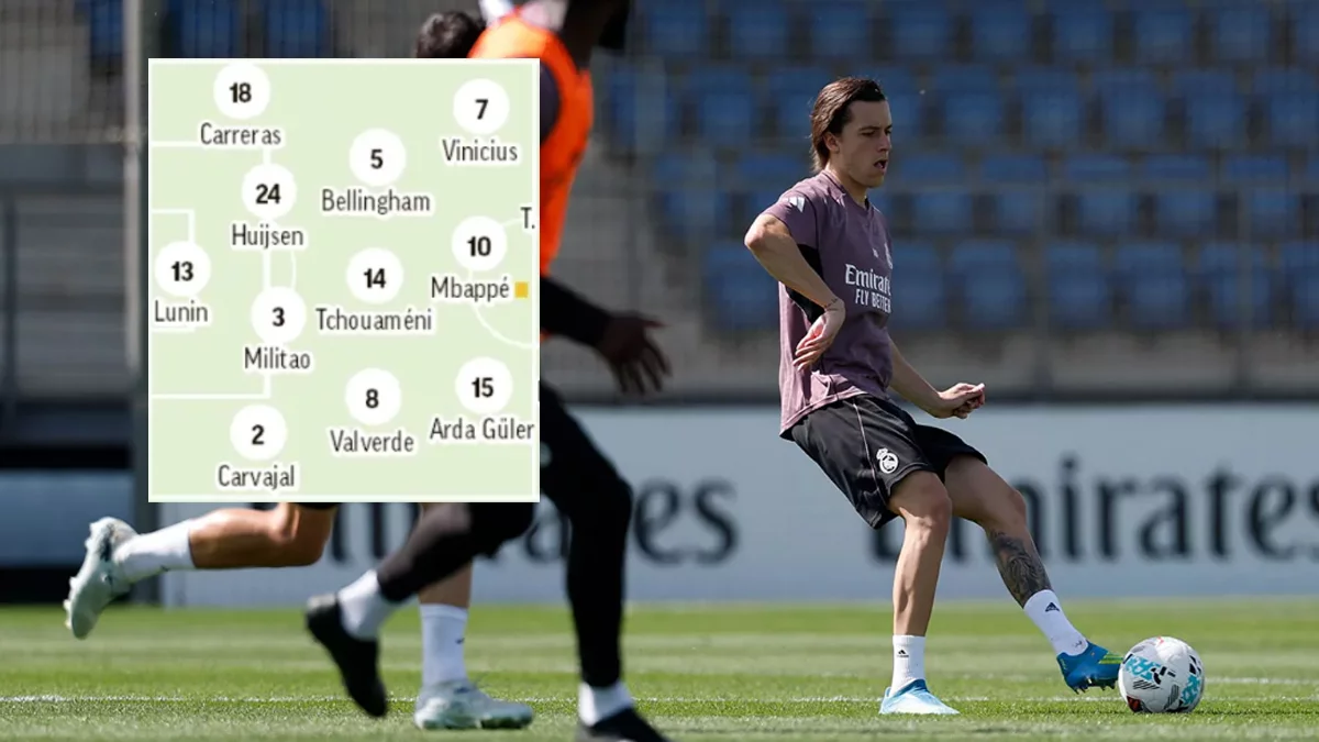 Once probable según Joel del Río en Marca estaría formado por: Lunin; Carvajal, Militão, Huijsen, Álvaro Carreras; Valverde, Tchouaméni, Bellingham, Arda Güler; Vinícius y Mbappé.
