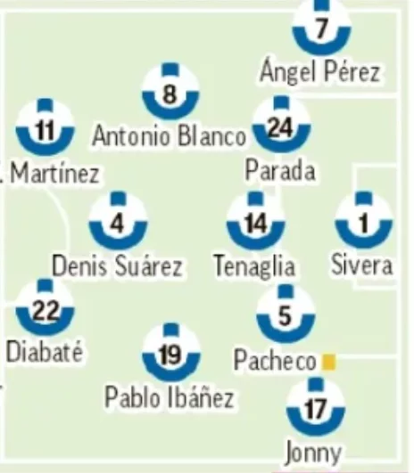En cuanto al once titular, todo apunta a que Youssef ocupará el carril izquierdo por el sancionado Rebbach, sin descartar un plan más conservador con Pacheco. En la mediapunta, Guridi, Aleñá y Denis Suárez se disputan la plaza, mientras que Diabaté seguiría de titular si Lucas Boyé no llega al cien por cien a la cita.