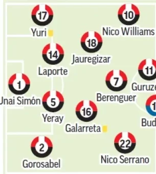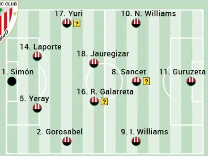 El once titular podría presentar novedades, teniendo en cuenta que el equipo mejoró en el segundo tiempo del partido contra el Villarreal, con la entrada de futbolistas como Gorosabel, Rego, Berenguer, Serrano y Navarro. Otros como Lekue, Galarreta o incluso Sancet o Iñaki Williams, peligran para iniciar contra el conjunto navarro.