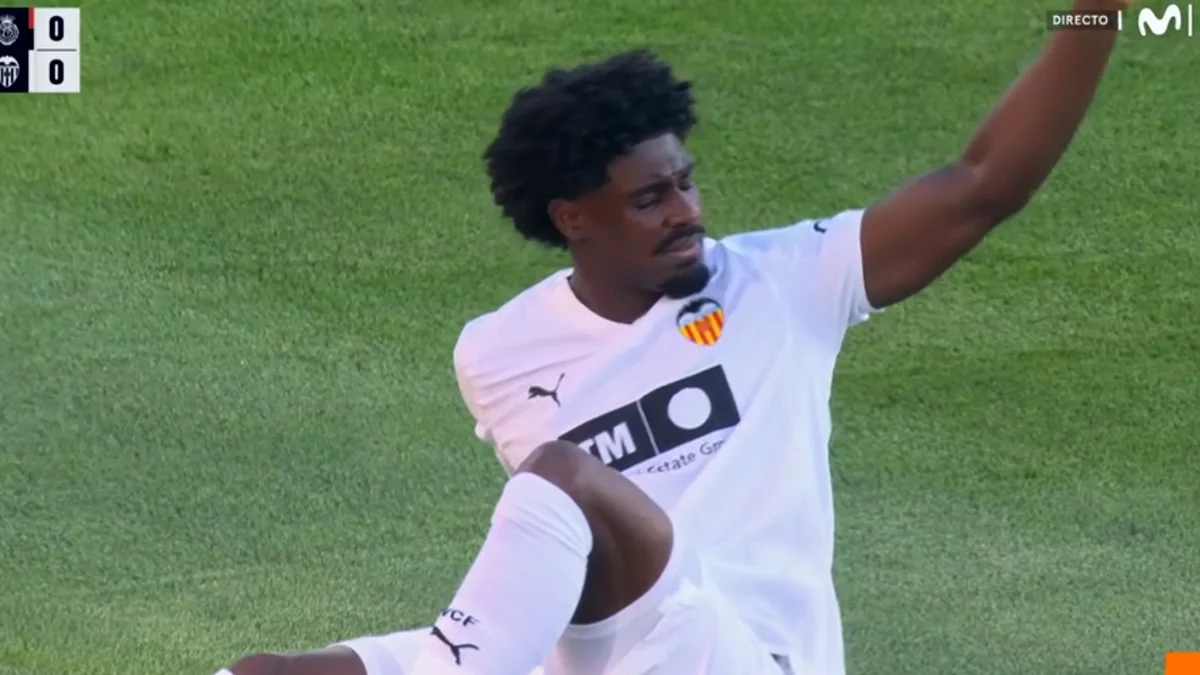 La acción se produjo antes del minuto 11, cuando el defensa, titular en el once de Corberán, no pudo continuar sobre el terreno de juego. En su lugar entró Renzo Saravia, obligado a reajustar el costado derecho de la defensa del Valencia en un inicio de partido complicado para los visitantes.