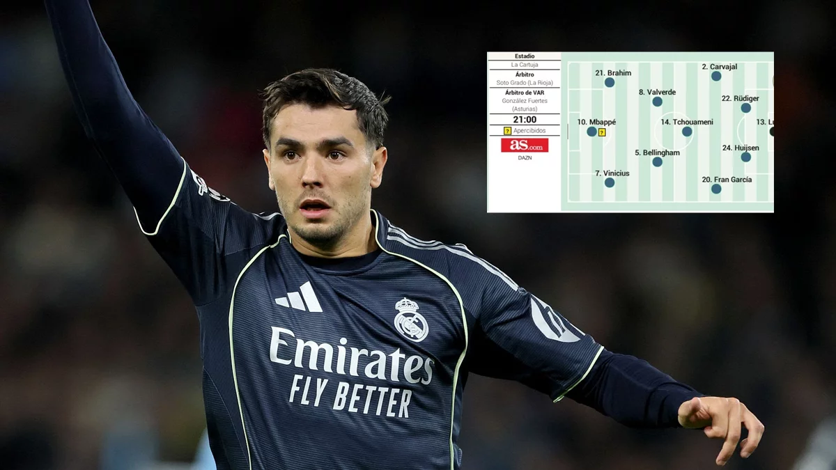 Once probable del Real Madrid según As: Lunin; Carvajal, Rüdiger, Huijsen, Fran García; Valverde, Tchouameni, Bellingham; Brahim, Mbappé y Vinicius.