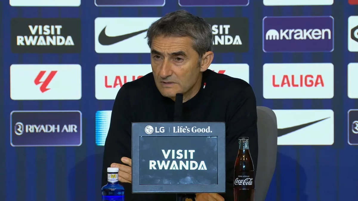 El entrenador del Athletic Club, Ernesto Valverde, ha atendido a los medios de comunicación este sábado por la noche, en la rueda de prensa posterior al partido contra el Atlético de Madrid, correspondiente a la jornada 32 del campeonato de Liga, que se disputó en el Estadio Riyadh Air Metropolitano.