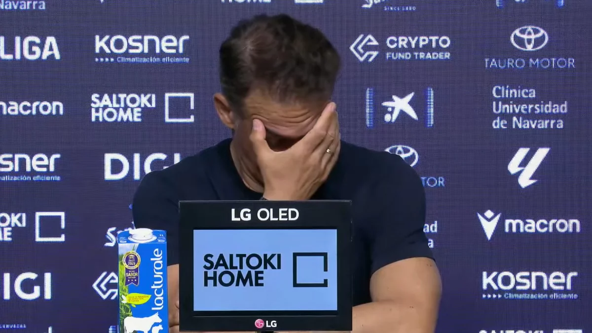 "Sí, intentarlo sí. Desde luego, yo le estoy poniendo todo mi empeño y toda mi vida. Y decir de verdad: no creo que haya trabajado más en mi vida que ahora. Porque necesitas muchas cosas: explicarles lo que queremos hacer, que el equipo se recupere. Es verdad que los resultados refuerzan todas esas situaciones y creo que hoy, si hubiéramos acabado ganando o sumando un punto, pues hubiéramos dado un pasito adelante. Pero claro que sí, al final quedan cinco partidos. Yo me encuentro, dentro de la situación jodida, porque es normal, porque es una situación jodida, claro. Pero yo me encuentro con fuerzas y con ganas de que ellos necesitan ahora una persona que tire de ellos. De verdad, ¿eh? Necesitan una persona que tire de ellos. Entonces, si yo agacho la cabeza, necesitan una persona que les levante y que tire de ellos y que saque lo mejor. Creo que hoy lo han hecho. Creo que después de la primera parte del otro día en Valencia, que fue mala, hoy lo han hecho. Pero el fútbol no te está dando. No te está dando porque es injustísimo perder. Creo que es injustísimo perder. Y más con esa circunstancia que, vale, que no le dais importancia, y el gol de Catena, y ja, ji, ja, ja, en Osasuna, que es normal, pero en nueve minutos. Es que no encuentro explicación. No los sé sacar por ningún sitio. Y buscáis otra situación de... Porque si de acierto empatamos a uno y todas las críticas dicen que, hostia, el equipo ha crecido, ha mejorado, ¿qué tal? Pero te meten nueve minutos y, si no sale a banda, te empatan. Y es que no lo veo por ningún lado. O sea, no comprendo. Yo creo que tienen que darse cuenta de lo que está jugando. Y que cuando son nueve minutos es cuando un equipo ha ilusionado, se pierde tiempo, hay que atender a alguien, entra el VAR... No sé, no sé de dónde han salido. De verdad."