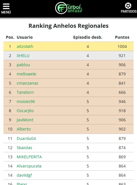 El Fantasy RPG ya tiene ganador del reto Anhelos Regionales. Tras varios episodios de máxima igualdad, planificación y conocimiento del fútbol español, aitzolath se ha proclamado vencedor final de este gran desafío, que ha premiado la capacidad de construir onces formados exclusivamente por futbolistas nacidos en territorio español y sumar puntos en función de su comunidad autónoma de nacimiento.