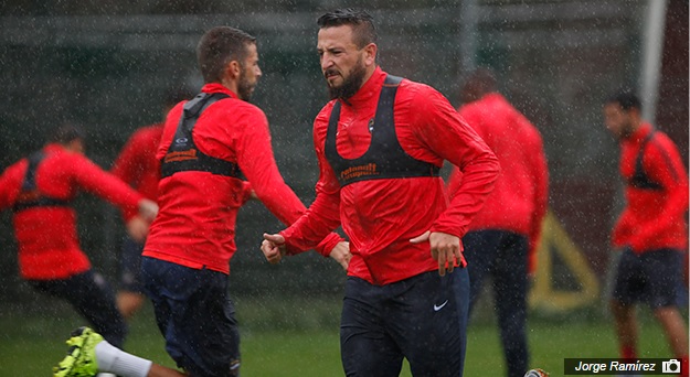 El balón ha capitalizado la atención desde el nacimiento de sesión para marcar el ritmo general del entrenamiento. Por su parte, los cancerberos levantinistas, Rubén, Jesús y Mariño, han efectuado un trabajo específico junto a Pepe Martínez Puig. Lucas Alcaraz tiene a todos los futbolistas del plantel a su disposición para preparar el choque ante el Sevilla, con la única excepción de Simao Mate. El centrocampista africano, reconvertido a central en el tiempo presente, cumplirá el segundo partido de la sanción de cuatro partidos impuesta tras la expulsión que sufrió en el enfrentamiento que cruzó al Levante y al Real Club Celta de Vigo en el estreno de la Liga BBVA.