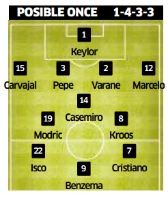 Un hombre parece ganar enteros para echar una mano a los centrales en este plan de supervivencia aérea: Casemiro. Con Sergio Ramos, posiblemente, fuera de concurso; dos laterales ‘bajitos’: Carvajal y Marcelo; otro mediocentro ‘bajito’, Modric y uno normal, Kroos, que precisamente no destaca por su juego de cabeza, la presencia del brasileño se antoja casi imprescindible.