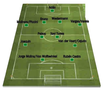 Bajo palos seguirá un Antonio Adán cada vez más en forma, lo mismo que ocurre con la pareja de centrales que conforman Bruno y Westermann. Aparte de Jordi y Tarek, cuarto y quinto en teoría para esa demarcación, Pezzella estaría a disposición de Mel si fuera perentorio, pues el esguince de grado II que padecía en el ligamento deltoideo de su pierna izquierda ha pasado al olvido, aunque el míster no tocará en lo posible su línea más entonada en estos momentos, como demuestra el hecho de que el equipo no haya encajado un solo tanto en las dos últimas jornadas. Ése es su plan para el lateral zurdo, pero Vargas lleva tiempo a medio gas (primero, de una contusión en la cadera; más recientemente, de unas molestias en la rodilla izquierda), por lo que podría ser el momento de que Varela le diera un respiro.