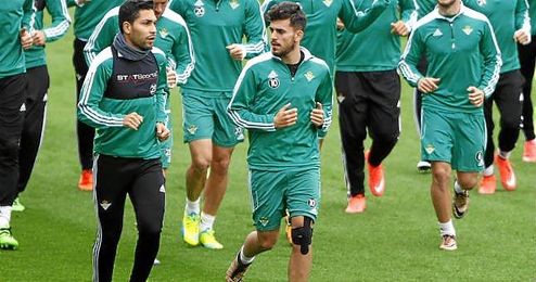 La gran incógnita de la sesión era saber si Dani Ceballos podrá estar mañana disponible o no tras resentirse durante esta semana de una contusión en la meseta tibial de su rodilla izquierda. El utrerano ha vuelto a realizar el trabajo grupal con un vendaje en la rodilla dañada. Está por ver si podrá acabar la sesión y realizar los ejercicios más exigentes.