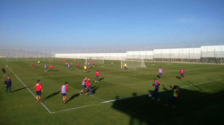 José González dispuso diversos ejercicios, culminados con un pequeño partido. En el lado blanco, se dispusieron Jesús Fernández, Babin, Ricardo Costa, Lombán, Biraghi; Doucs, Rober, Peñaranda y Success, mientras que en el lado rojo quedaron Kelava, Mainz, Doria, Salva Ruiz; Fran Rico, Krhin, Edgar, Cuenca y Barral. Como elemento neutro, con ambos grupos, estuvo Rubén Pérez.