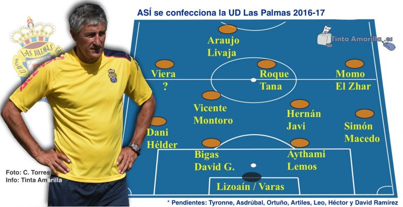 La primera semana de la pretemporada dio para mucho. Michel Macedo (procedente del Almería) y Marko Livaja (del Rubin Kazán) se añadieron a los nombres que buscaba el club para el lateral derecho y delantera. Y con ellos, unido a Roque, la cifra mágica de 22 jugadores que pidió Quique Setién está muy próxima. Queda por resolver de forma oficial si alguno/s los jugadores a prueba durante el stage inicial (Tyronne, Asdrúbal, Ortuño, Artiles, Héctor Figueroa y Leo) ocupa/n plaza o tienen nuevos destinos. Es obvio que una amplia mayoría de este grupo saldrá cedido porque los puestos previstos, salvo que Setién altere su valoración, están prácticamente cubiertos y el club ha confirmado que sigue sondeando el mercado para un jugador de banda. Esa es la prioridad.