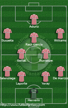 XI #AthleticClub: Herrerín; De Marcos, Yeray, Laporte, Balenziaga; Iturraspe (San José 59'), Beñat (Mikel Rico 80'); Susaeta (Muniain 59'), Raúl García, Williams; Aduriz