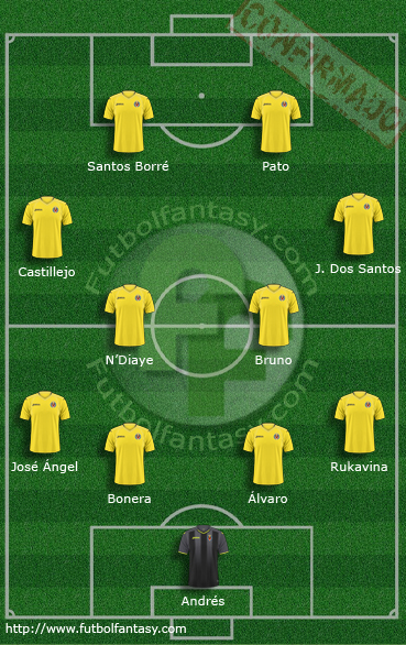XI #VillarrealCF: Andrés; Rukavina, Álvaro, Bonera, José Ángel; J. Dos Santos (Soriano 70'), N'Diaye (Sansone 82'), Bruno, Castillejo; Pato, Santos Borré (Bakambu 65')