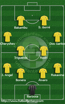 XI #VillarrealCF: Barbosa; Rukavina, Álvaro, Bonera, José Ángel; J. Dos Santos, Rodrigo, Trigueros, Cheryshev (Castillejo 46'); Bakambu (Mario 82'), Santos Borré (Sansone (70')