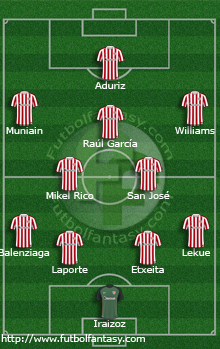 XI #AthleticClub: Iraizoz; Lekue, Etxeita, Laporte, Balenziaga; San José, Mikel Rico (Iturraspe 63'); Williams, Raúl García (Eraso 61'), Muniain; Aduriz (Susaeta 60')