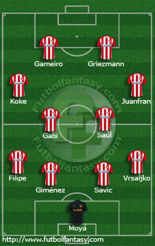 3 - Atlético de Madrid: Moyá; Vrsaljko, Savic, Giménez, Filipe; Juanfran, Saúl, Gabi, Koke; Griezmann y Gameiro. También jugaron: Lucas, Thomas, Carrasco, Gaitán, Torres y Correa.