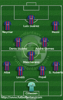 XI #FCBarcelona: Cillessen; Sergi Roberto (Vidal 45'), Piqué, Umtiti, Alba; Mascherano (Rakitic 66'), André Gomes, Denis Suárez; Messi, Neymar (Arda 75'); Luis Suárez