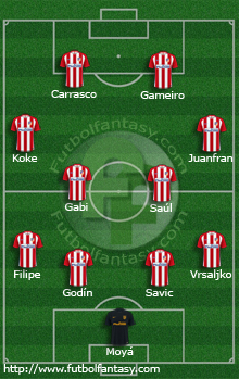 XI #Atlético: Moyá; Vrsaljko (Torres 46'), Savic, Godín, Filipe; Juanfran, Saúl (Gaitán 59'), Gabi, Koke; Carrasco, Griezmann