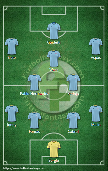 XI #RCCelta: Sergio; Mallo, Cabral, Fontàs, Jonny; Radoja, Pablo Hernández (Beauvue 86'); Aspas (Roncaglia 82'), Wass (Jozabed 74'), Sisto; Guidetti