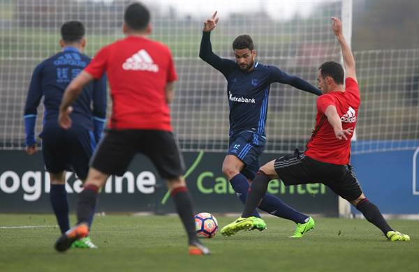 La Real y Osasuna han cerrado la semana del parón liguero con una intensa prueba: un partido de entrenamiento disputado a puerta cerrada en Zubieta que ha finalizado con el resultado de cero a uno. Ha sido un buen ensayo para continuar con el ritmo de competición antes de este fin de semana sin competición de liga