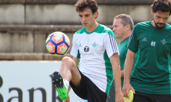 Nueva sesión de entrenamiento en la Ciudad Deportiva Luis del Sol para la primera plantilla del Real Betis Balompié. La escuadra dirigida por Alexis Trujillo ha contado hoy con el regreso de Rubén Pardo al trabajo con el grupo. El centrocampista riojano se ejercitaba al margen en los días previos debido a una rinitis aguda. No obstante, hoy se reincorporado a la dinámica grupal y ha completado todos los ejercicios dispuestos por el cuerpo técnico sin complicaciones. Del mismo modo, Riza Durmisi y Dani Giménez, que ayer se reintegraban con sus compañeros tras superar una gastritis y un proceso gripal respectivamente, han vuelto a entrenarse sin problemas.