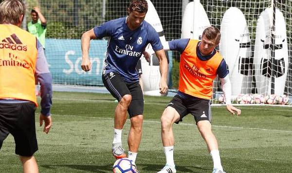 Zidane contó con el jugador del Real Madrid Castilla Enzo, en una sesión que los madridistas iniciaron con diversos ejercicios de calentamiento con balón para posteriormente completar varias series de potenciación física. A continuación, ejercitaron la posesión del esférico y la presión, centros y remates y partidos en espacios reducidos.