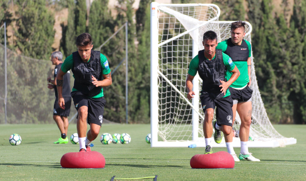 El jueves amanecía en Montecastillo con una nueva sesión de trabajo para el Real Betis. La plantilla de Quique Setién completaba en el césped el primero de los entrenamientos previstos para hoy jueves, antesala del partido de mañana ante la Real Balompédica Linense, primer amistoso de la pretemporada.
