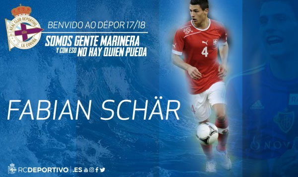 Fabian Lukas Schär (Wil, Cantón de San Galo, Suiza, 20 de diciembre de 1991) se ha convertido esta mañana, pendiente de revisión médica, en nuevo jugador del Real Club Deportivo para las próximas 4 temporadas. El futbolista internacional suizo juega como defensa central y procede del TSG 1899 Hoffenheim de la Bundesliga.
