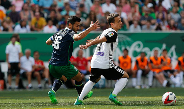 Sin más argumentos que un par de carreras de Zaza y dos gestos de Nacho Gil, el Valencia se vio por debajo en el marcador. Un error defensivo en cadena entre Vezo y Abdennour brindó a Calvillo una ocasión en bandeja para anotar con facilidad desde dentro del área ante el que nada pudo hacer Jaume.