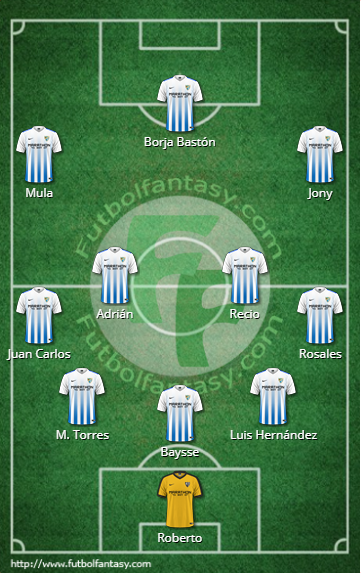 Málaga: Roberto; Rosales, Luis Hernández, Baysse, Torres, Juan Carlos; Recio, Adrián; Jony, Mula; Borja Bastón