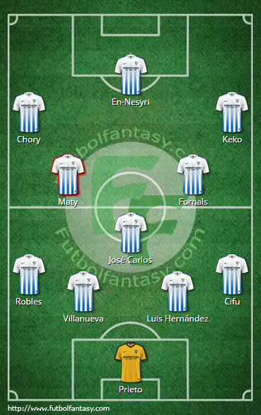 Málaga: Andrés Prieto; Cifu, Luis Muñoz, Mikel, Álex Robles; Keko, José Carlos, Maty, Chory; Fornals y En-Nesyri