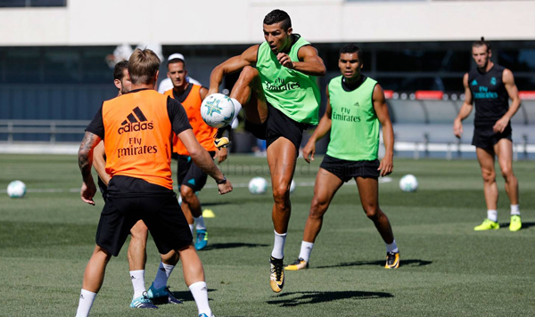 Los jugadores llevaron a cabo con intensidad varios ejercicios de circulación y posesión, además de ensayar el remate a portería. Cristiano Ronaldo, por su parte, combinó el trabajo con el resto de sus compañeros con su puesta a punto en solitario.