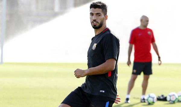 Luis Suárez ha sido la principal sorpresa en la sesión de esta tarde al entrenarse con el resto de sus compañeros a pesar de que todavía le faltaban dos semanas para recuperarse.