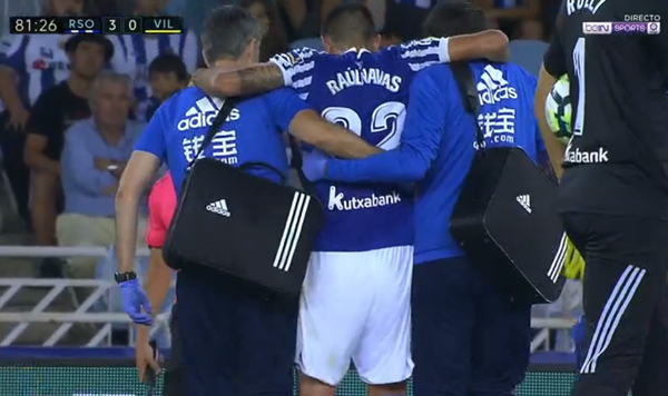 Raúl Navas se ha visto obligado a abandonar el campo durante el partido ante el Villarreal tras sufrir una lesión en el minuto 82 del partido.