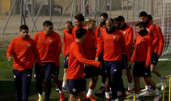 Las únicas ausencias han sido las de los lesionados Kjaer y Corchia, además de Pablo Sarabia. Este martes el Sevilla volverá a ejercitarse a puerta cerrada en la ciudad deportiva.