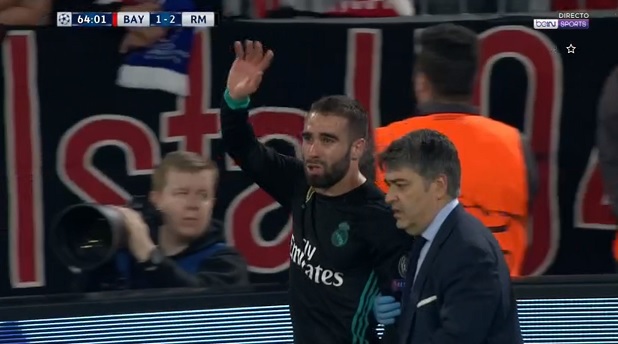 Dani Carvahal se ha visto obligado a abandonar el césped del Allianz Arena este miércoles por la noche ante el Bayern de Münich, en la ida de las semifinales de Champions, a causa de una lesión muscular.