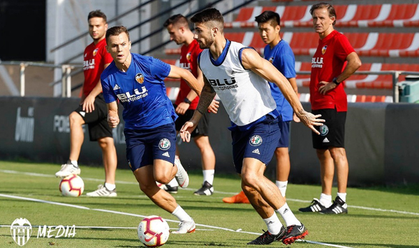 De cara al próximo compromiso, el domingo ante el Espanyol en Cornellà, los jugadores de Marcelino han realizado en la mañana de este jueves una nueva sesión de trabajo, marcada por la alta intensidad a pesar del calor reinante en la Ciutat Esportiva de Paterna.