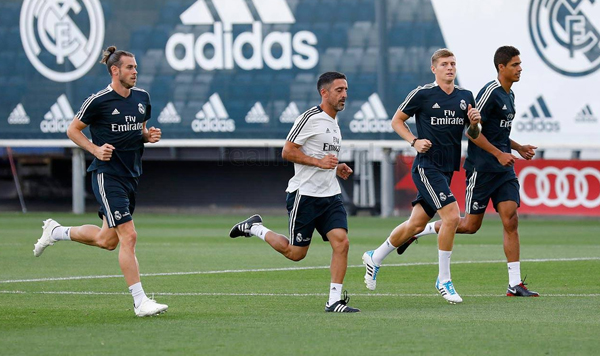 La plantilla completó la segunda sesión de la semana en la Ciudad Real Madrid. Bale, Varane y Kroos, que disputaron compromisos con sus selecciones, se incorporaron al trabajo y se entrenaron al margen. Comenzaron ejercitándose en el gimnasio y posteriormente saltaron al césped para realizar diversas series de carrera y distintos ejercicios con el balón.