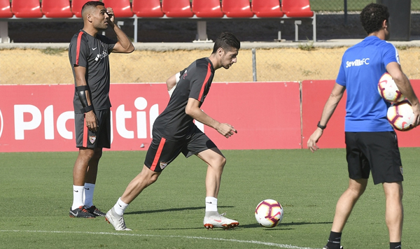 El Sevilla FC se ha entrenado en la mañana de hoy tras la victoria de anoche ante el Real Madrid, encarando ya el encuentro del próximo sábado ante el Eibar correspondiente a la séptima jornada del campeonato liguero.