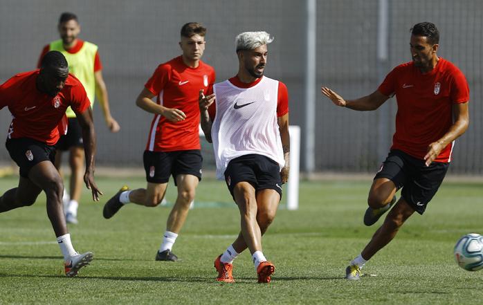 En el entrenamiento matinal de este martes, el preparador dividió a su plantilla en dos bloques entre defensores y atacantes para una sesión muy específica. Volvió a quedarse en el gimnasio Álex Martínez y Bernardo esta vez sí completó el entrenamiento con normalidad.