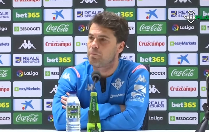 "En principio Juanmi no está. Diego Lainez tiene un golpe que no sé aún como está porque nos falta el entrenamiento de hoy y no sé que valoración han hecho los doctores. Carvalho en principio la semana que viene ya va a estar toalmente disponible y Alfonso Pedraza ya estaba listo para el partido de Copa. Hablamos de una baja o dos, William y Juanmi y pendientes de Diego.