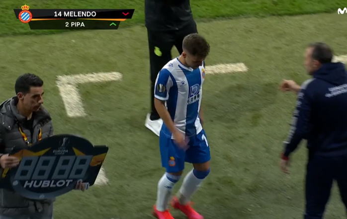 Óscar Melendo ha abandonado el partido de este jueves frente al Wolves en Cornellà, correspondiente a la vuelta de los dieciseisavos de final de la Europa League, debido a unas molestias físicas.