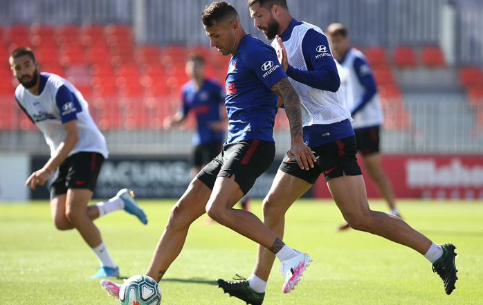 El Atlético de Madrid completó este viernes la penúltima sesión de la semana en la Ciudad Deportiva de Majadahonda. Lo hizo con un entrenamiento en el que hubo físico, pero sobre todo, mucho balón, con la plantilla dividida en dos grupos, como viene siendo habitual desde el martes, cuando el cuadro rojiblanco pasó a la siguiente fase de trabajo.