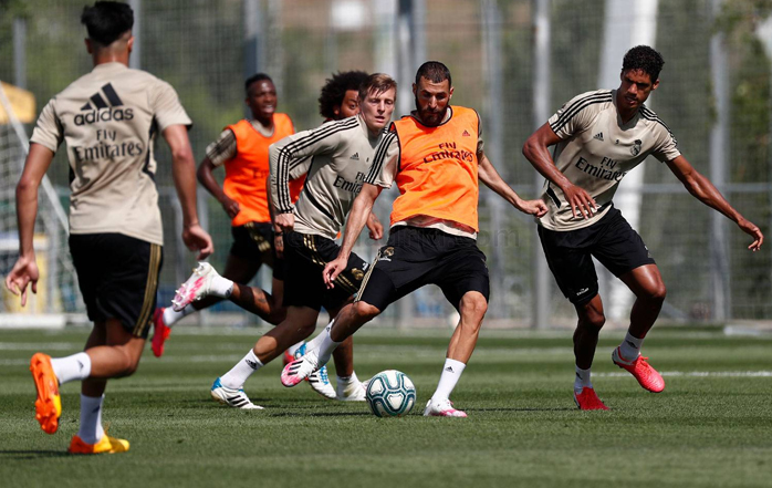 El Real Madrid inició la cuarta semana de entrenamientos con la novedad de que Zidane pudo trabajar con todo el grupo por primera vez desde el 11 de marzo. Bajo las estrictas normas sanitarias del protocolo fijado por LaLiga debido a la pandemia del COVID-19, los jugadores completaron una primera parte de la sesión muy física y continuaron con ejercicios individuales y en grupos con balón y porterías. Finalmente disputaron un partido de doce contra doce. Nacho trabajó en solitario en el césped y Jovi? continúa con su proceso de recuperación.