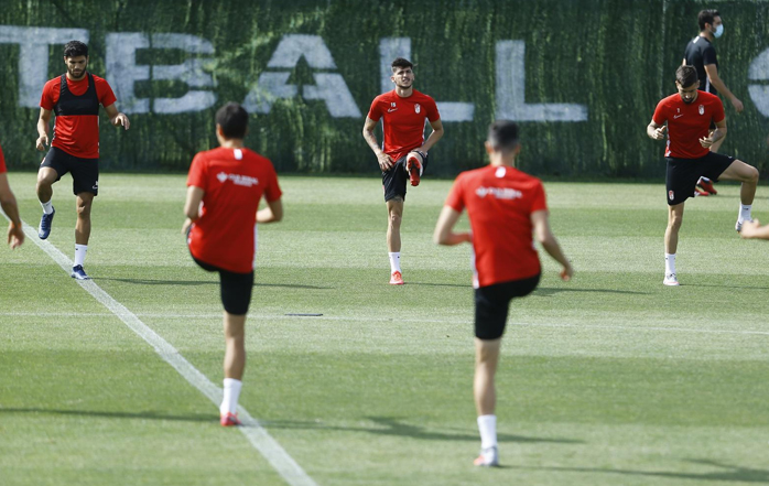 En apariencia, por lo que dejan ver las imágenes, el equipo sigue entrenándose con las únicas bajas de Montoro, Álex Martínez, Quini y Neyder Lozano. En el vídeo difundido se contempla a los jugadores en el calentamiento, para luego proceder a una serie de rondos con roles condicionados según el color del peto.