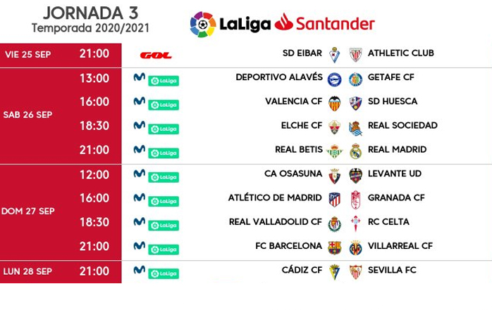 Por el momento, Eibar y Athletic tendrán su partido correspondiente a la tercera jornada del campeonato el viernes, 25 de septiembre, mientras que Cádiz y Sevilla jugarán el lunes 28, debido en parte a la disputa de la Supercopa de Europa que el club andaluz jugará la semana que viene contra el Bayern.