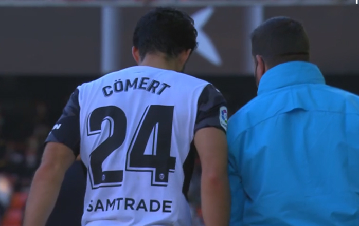 El central suizo de 24 años del Valencia, Eray Cömert, tuvo que pedir el cambio de forma obligada en el minuto 69 del encuentro de este domingo por la tarde en Mestalla, contra la Real Sociedad, correspondiente a la jornada 23 de Liga.