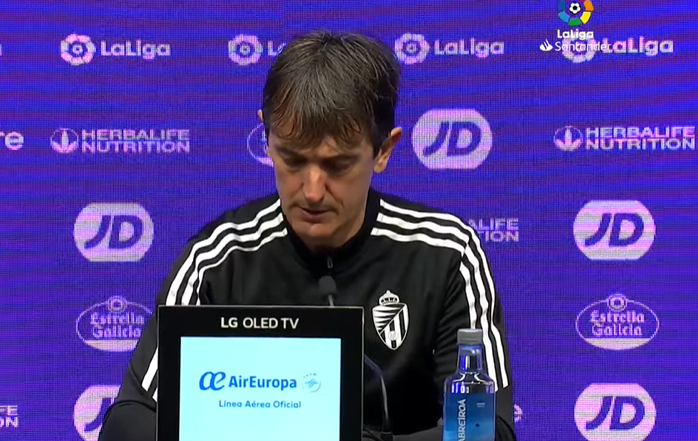 "Lo que estamos es muy contentos. Siempre os digo que lo que tenemos que hacer es irnos orgullosos. El día que ganas te vas contento y el que pierdes te vas triste, pero orgullosos siempre. Hoy he visto rugir el estadio. Lloviendo, con todo, pero el estadio ha estado... cuando vamos juntos, se gana. Se gana y hoy creo que el equipo ha estado valiente, que el plan de partido ha ido bien. Claro que te buscan problemas, porque este equipo es muy bueno y tengo que resaltar que sigo viendo un jugador que me parece de los mejores que he visto en mi vida. Ese pequeño (Silva) es capaz de activar a todo el equipo suyo, desesperar al rival y no se la quitas. David Silva es un jugador descomunal y este equipo, vuelvo a repetir y vuelvo a decir que soy un admirador de la Real en su modelo de juego y en todo lo que hacen,... y lo hacen muy bien, te hacen sufrir mucho. Hemos sufrido detrás del balón, hemos sufrido detrás de ellos, pero hemos estado estables. Hemos teniendo las ocasiones más claras. Es verdad que ese gol que les anulan nos sonríe, pero luego varias ocasiones clarísimas nuestras, la de Shon y la de Feddal. Entonces... me voy muy contento por eso, por la victoria y por el rival que es".