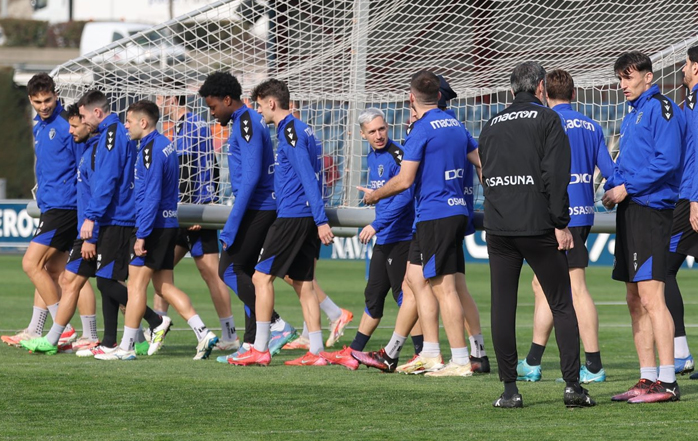 Vicente Moreno no podrá contar para este próximo partido con los sancionados Jesús Areso y Aimar Oroz, motivo por el cual se verá obligado a buscar soluciones. En el entrenamiento de hoy, ha probado con Rubén Peña de lateral y con Moi Gómez en el centro del campo, en un once que completaría Enzo Boyomo, que vuelve tras cumplir sanción, en lugar de Jorge Herrando.